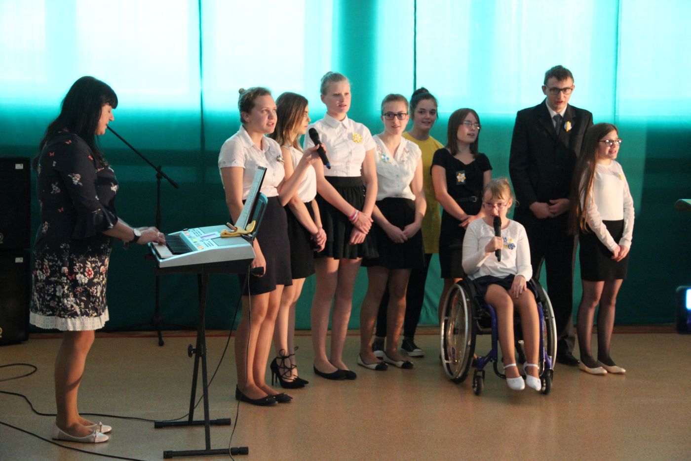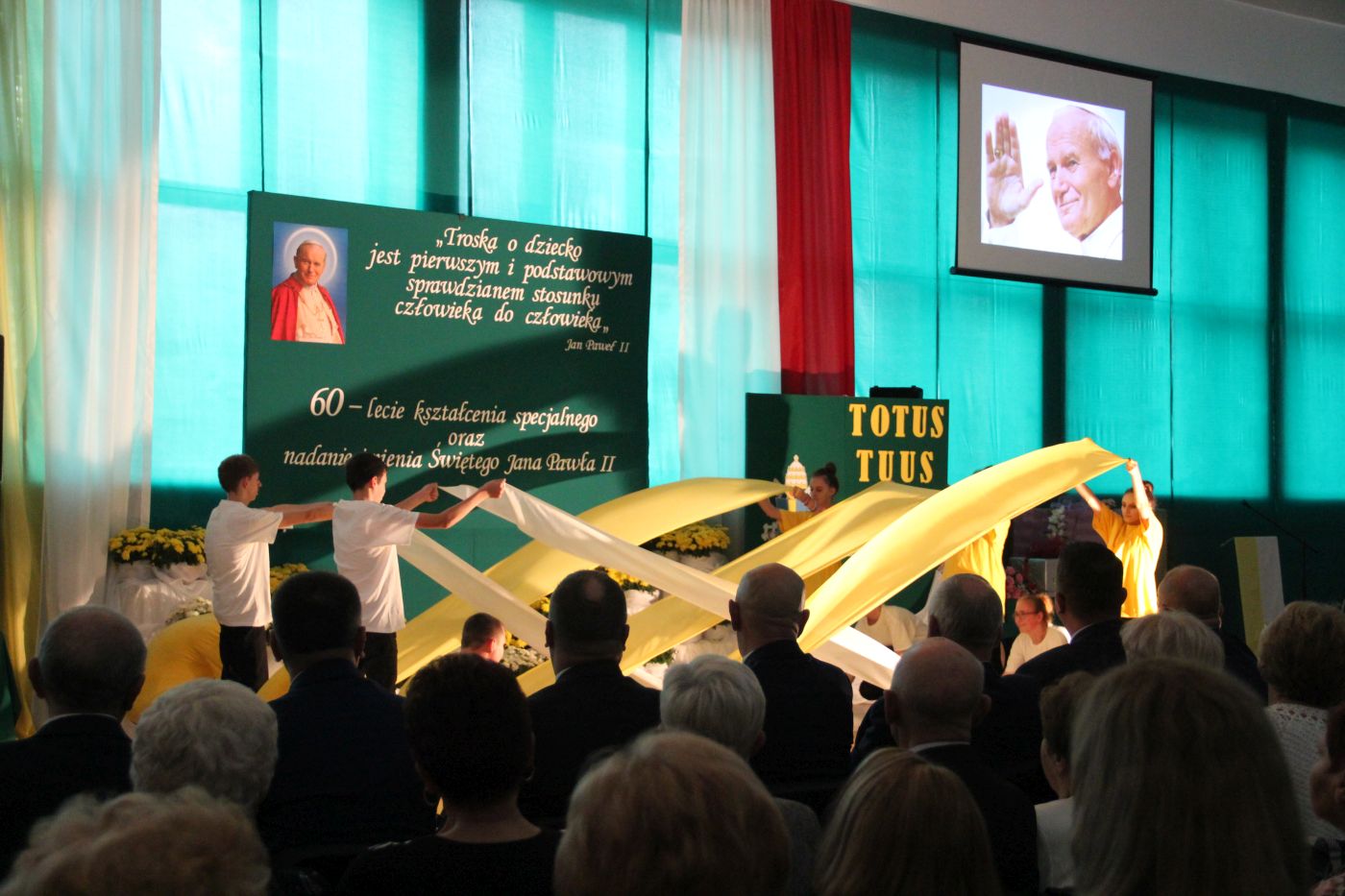 Na zakończenie wczorajszej święta ośrodka wyświetlono prezentację z zarysem historycznym placówki oraz artystyczny wyraz na scenie zaprezentowali wychowankowie SOSW.