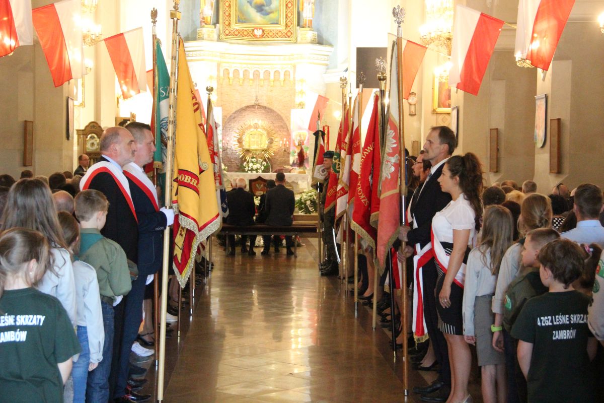 Msza Święta, której przewodniczył ks. Biskup Janusz Stepnowski – Ordynariusz Diecezji Łomżyńskiej, odbyła się w kościele pw. Trójcy Przenajświętszej w Zambrowie. Na uroczystość przybyli: Dowódca 15 Giżyckiej Brygady Zmechanizowanej – generał brygady dr Jarosław Gromadziński, Komendant Garnizonu Białystok – major Jan Busłowicz, synowie poległego oficera kpt. Władysława Dąbrowskiego – Pan Jerzy i Tadeusz Dąbrowscy z rodzinami, kombatanci, przedstawiciele władz szczebla krajowego, przedstawiciele władz samorządowych z województwa, powiatu, miasta i okolicznych gmin, poczty sztandarowe, przedstawiciele placówek oświatowych, służb mundurowych, stowarzyszeń, związków, harcerzy, licznie zebrani mieszkańcy Zambrowa oraz przedstawiciele lokalnych i regionalnych mediów.