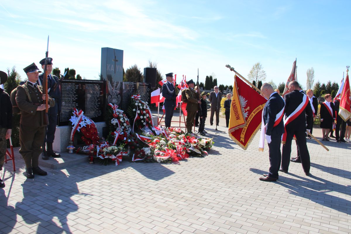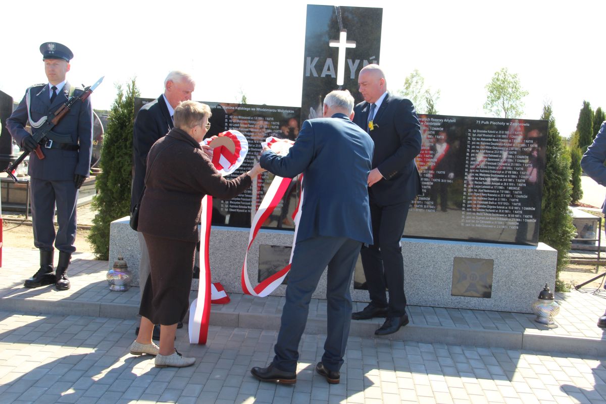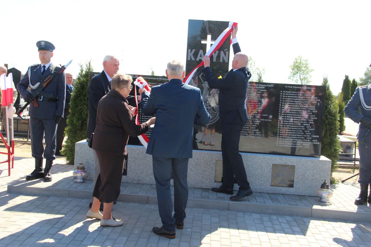 Głównym punktem wczorajszej uroczystości było odsłonięcie nowego pomnika ku czci i pamięci oficerów zamordowanych w Katyniu, Charkowie i Twerze-Miednoje. Symbolicznego odsłonięcia dokonali: Przewodniczący Rady Miasta Zbigniew Korzeniowski, Burmistrz Miasta Zambrów Kazimierz Dąbrowski oraz Witomiła Wołk–Jezierska wraz z Jerzym Dąbrowskim – honorowym obywatelem Miasta Zambrów, synem kpt. Władysława Dąbrowskiego dowódcy I kompanii ckm, rannego w Bitwie o Zambrów.