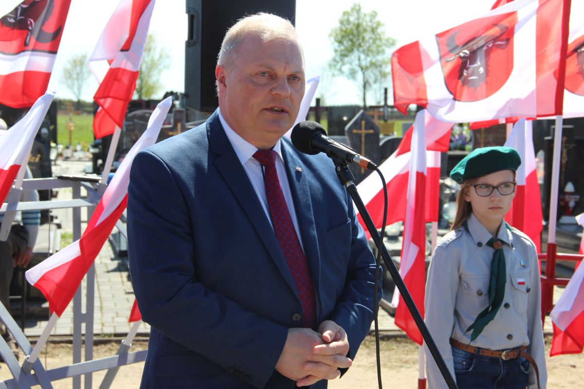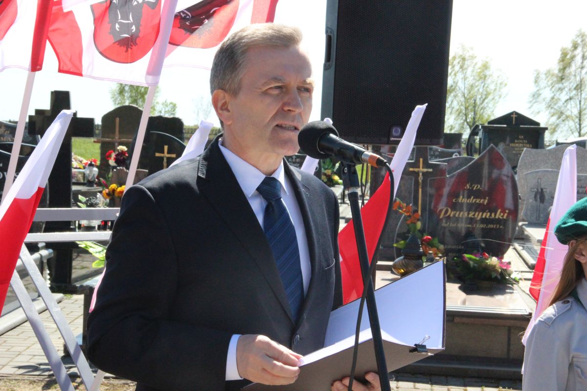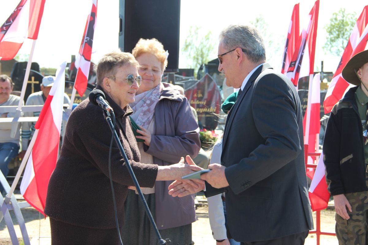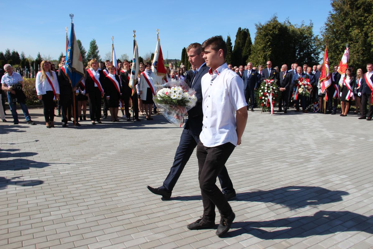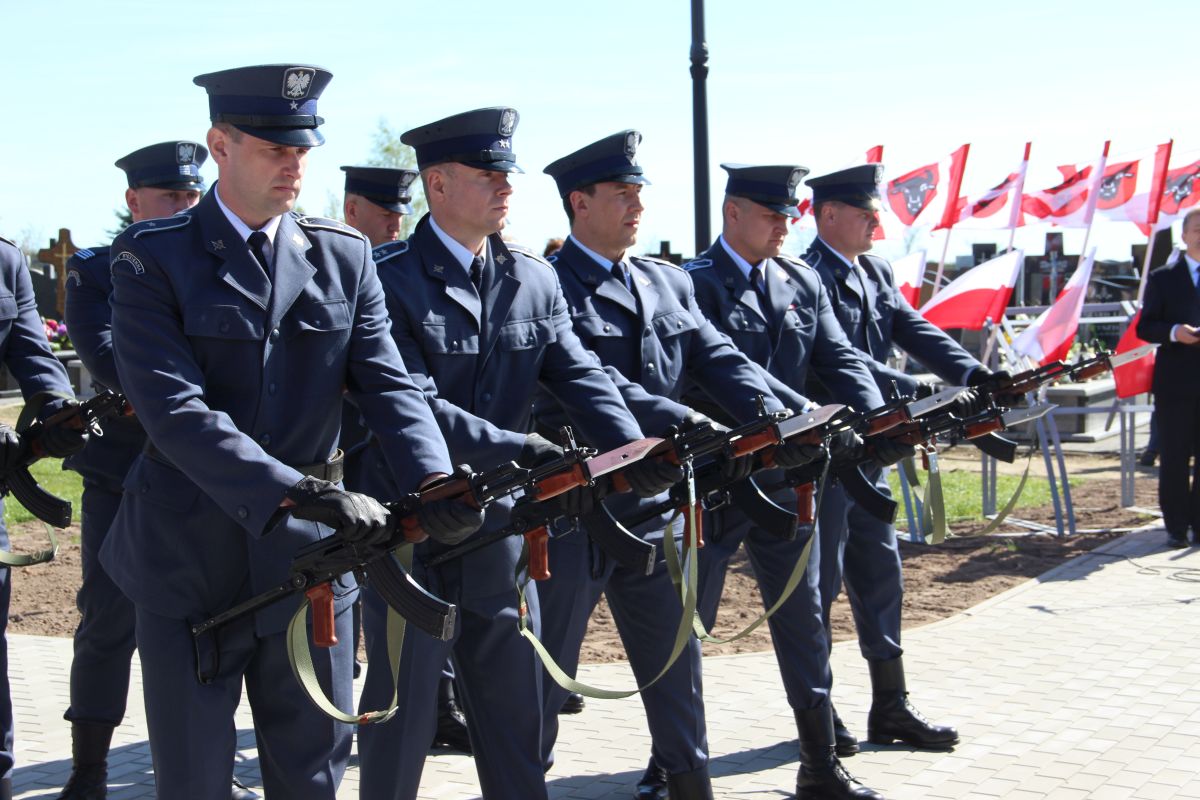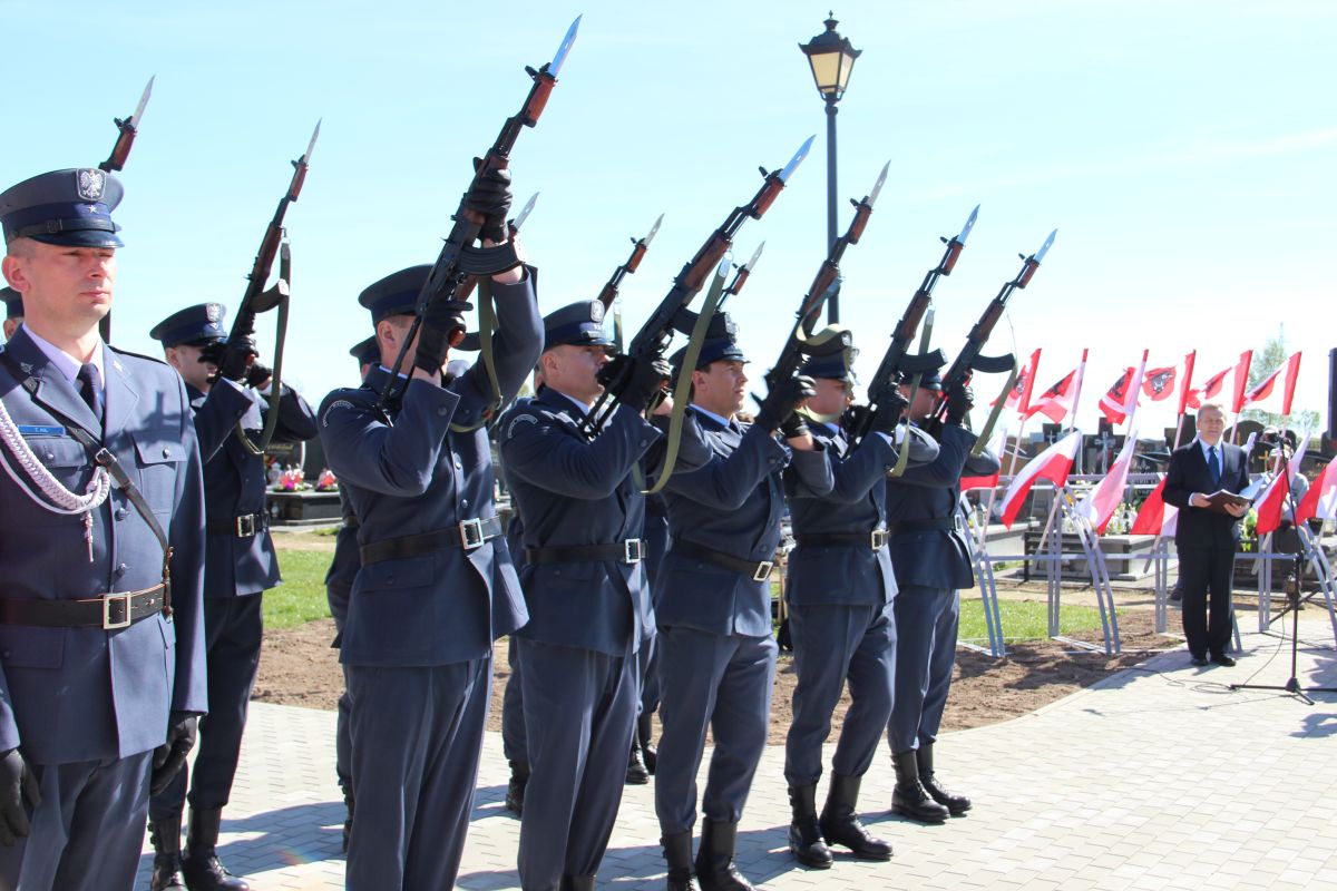 Dalsza część uroczystości odbyła się na cmentarzu komunalnym na ul. ks. H. Kulbata pod nowo powstałym pomnikiem upamiętniającym oficerów zamordowanych w Katyniu, Charkowie i Twerze-Miednoje. Miejska Młodzieżowa Orkiestra Dęta pod batutą kapelmistrza Krzysztofa Witkowskiego wykonała hymn Rzeczypospolitej Polskiej, następnie wystąpił Burmistrz Miasta Zambrów Kazimierz Dąbrowski. Głos zabrał również poseł na Sejm RP Lech Antoni Kołakowski oraz Witomiła Wołk–Jezierska – córka zamordowanego w Katyniu oficera artylerii Wincentego Wołka. Pani Witomiła oprócz słów podziękowania i wdzięczności przekazała, swojego autorstwa książkę pt. „Mazowiecka Szkoła Podchorążych Rezerwy Artylerii im. generała Józefa Bema w Zambrowie”, którą otrzymali: Burmistrz Miasta Zambrów Kazimierz Dąbrowski, ks. prał. Marian Olszewski, Jerzy Dąbrowski, Dariusz Grabowski, Jan Zakrzewski, Tomasz Piórkowski, Andrzej Brzóska i Karolina Ilczuk.
