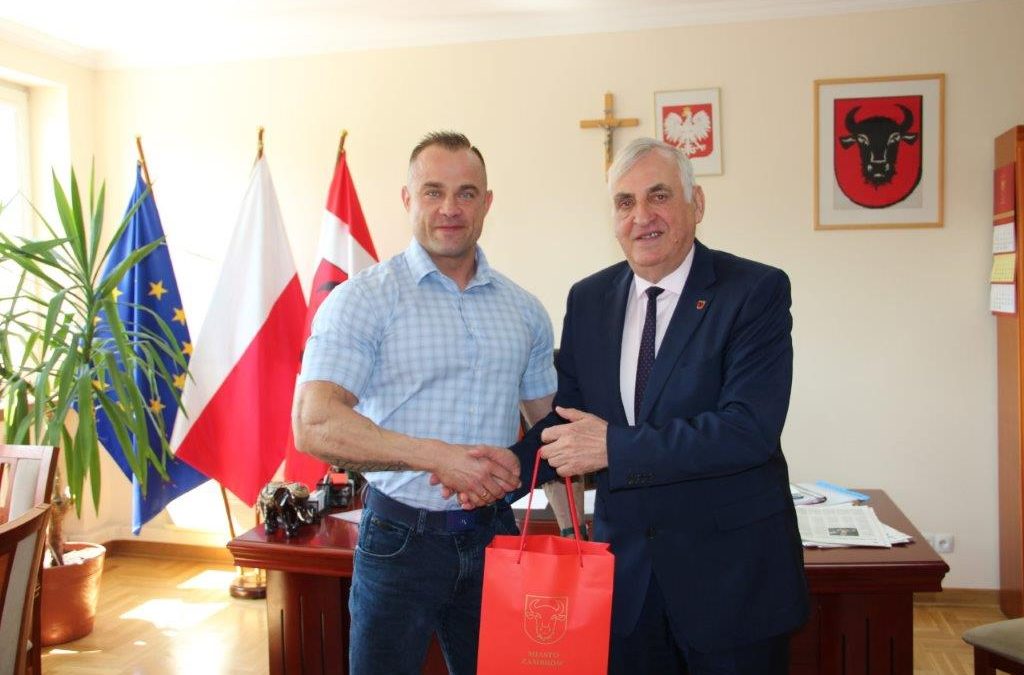 Burmistrz Miasta Zambrów Kazimierz Dąbrowski gościł dziś w swoim gabinecie Łukasza Sztuczkę – zambrowianina, kulturystę, który w tym roku zadebiutował na Międzynarodowych Mistrzostwach Polski. Włodarz miasta podziękował kulturyście za dotychczasowe osiągnięcia, życząc dalszych sukcesów w sportowej karierze.