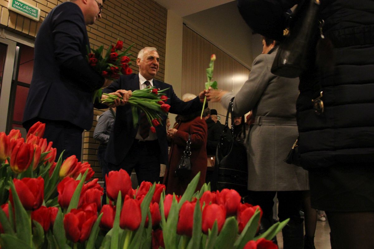 Na zakończenie wczorajszego wieczoru Burmistrz Miasta Zambrów wręczył dla każdej Pani tulipana.