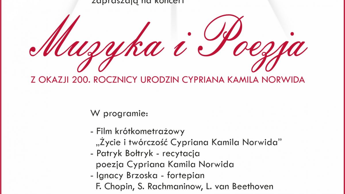 Dnia 8 października 2021 (piątek) o godzinie 17.00 w sali koncertowej Państwowej Szkoły Muzycznej I stopnia w Zambrowie (przy Alei Wojska Polskiego 5) odbędzie się koncert „Fortepian Chopina” w wykonaniu Ignacego Brzoski oraz Patryka Bołtryka.