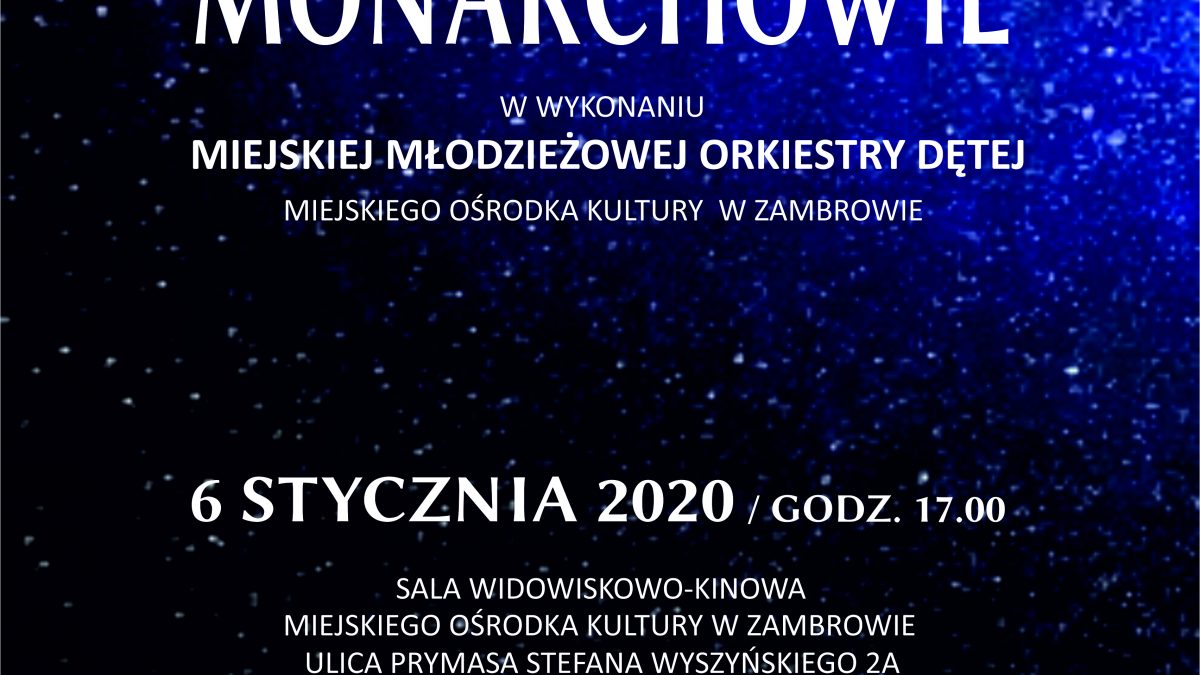 Zapraszamy wszystkich mieszkańców miasta i okolic na koncert z okazji Święta Trzech Króli pn. „Mędrcy Świata Monarchowie”, który odbędzie się 6 stycznia 2020 roku o godz. 17.00 w Miejskim Ośrodku Kultury w Zambrowie.