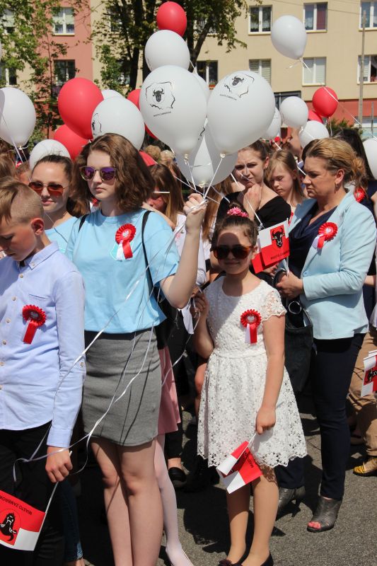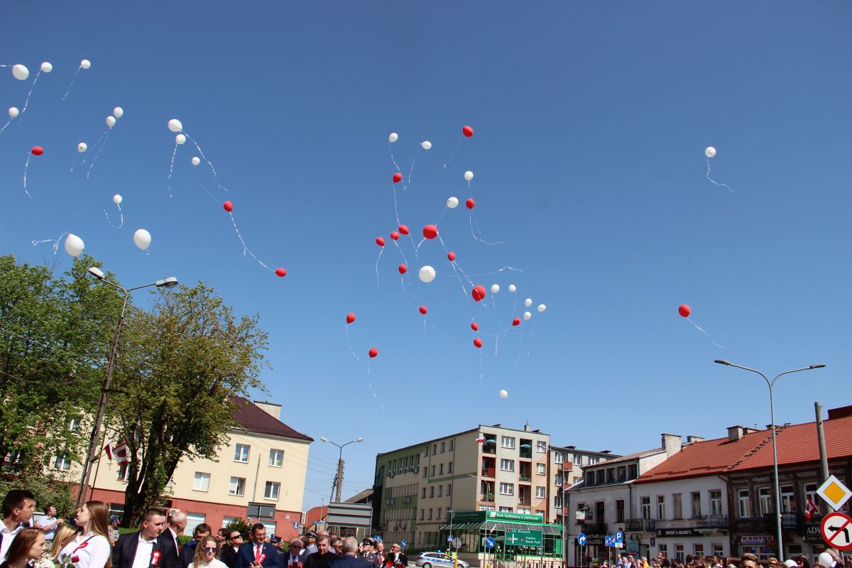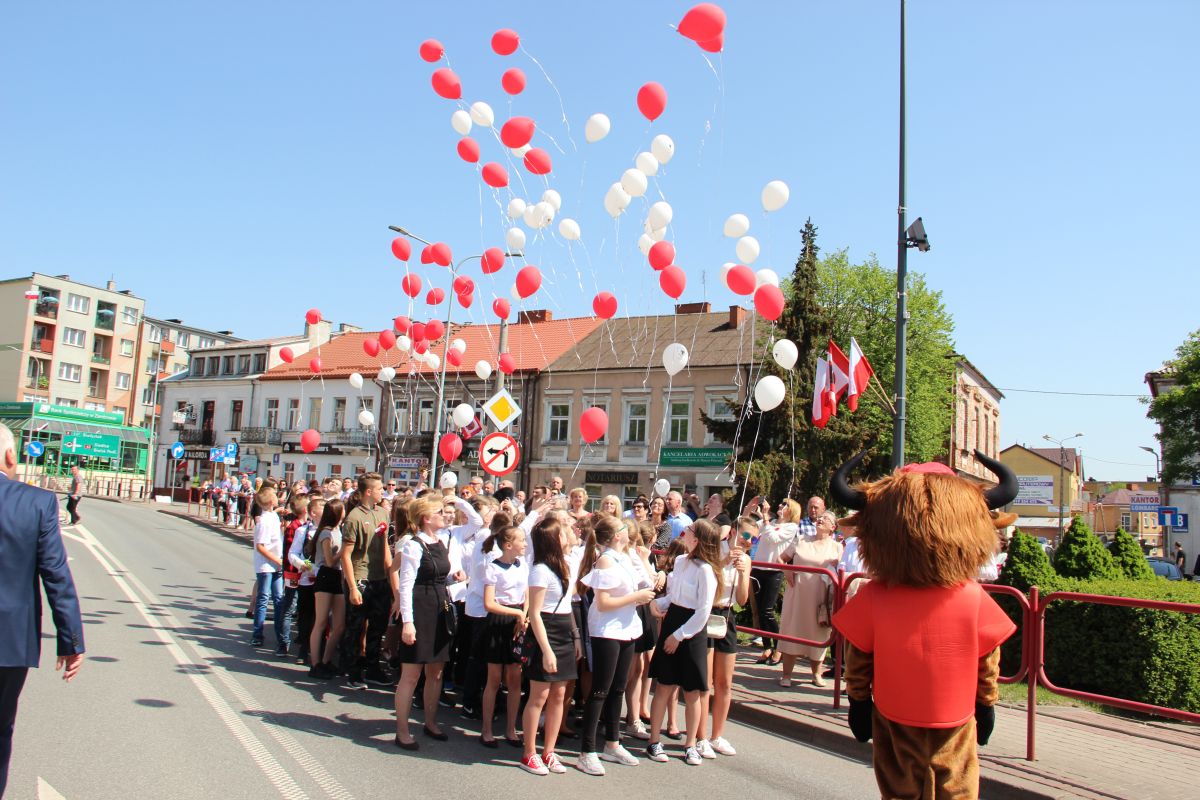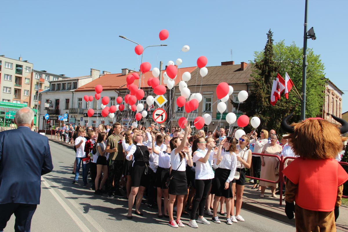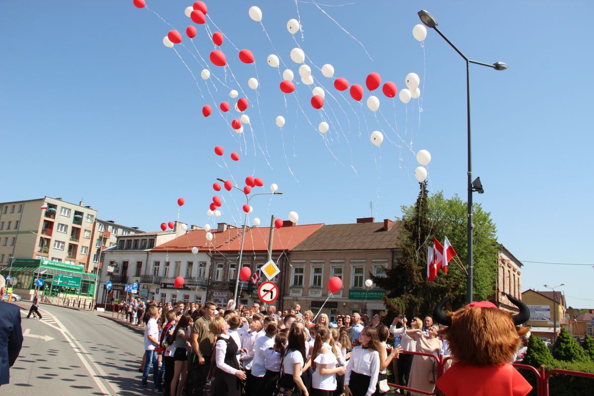 Tuż po przemówieniu Burmistrza dzieci i młodzież wypuściła z rąk balony, które w powietrzu utworzyły biało – czerwoną flagę. Następnie głos zabrał Poseł na Sejm Rzeczypospolitej Lech Antoni Kołakowski.