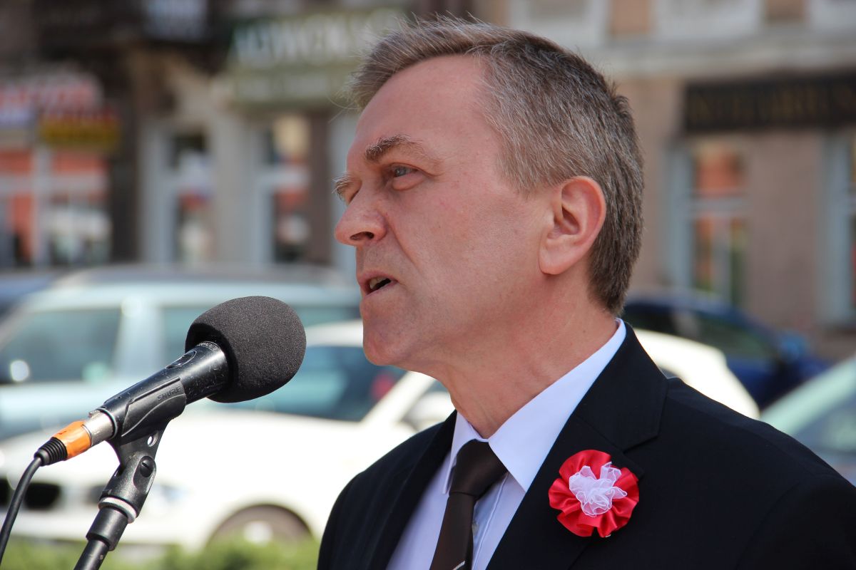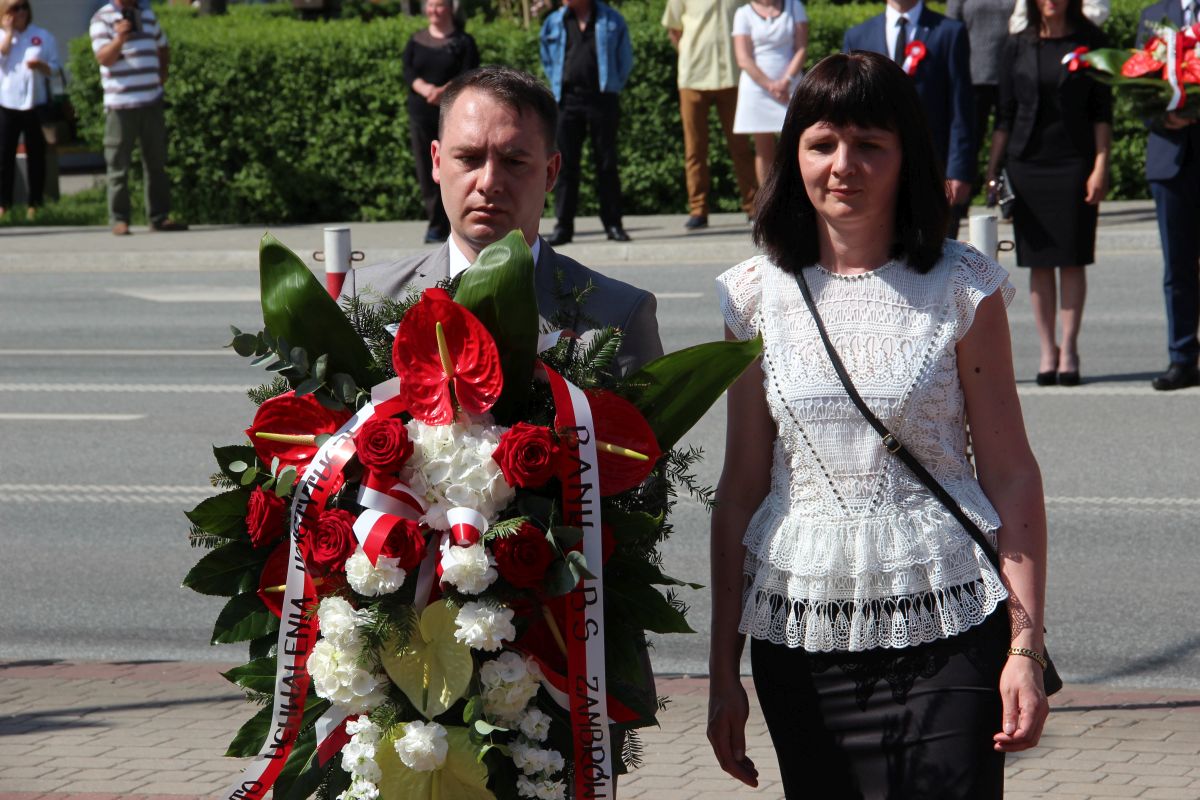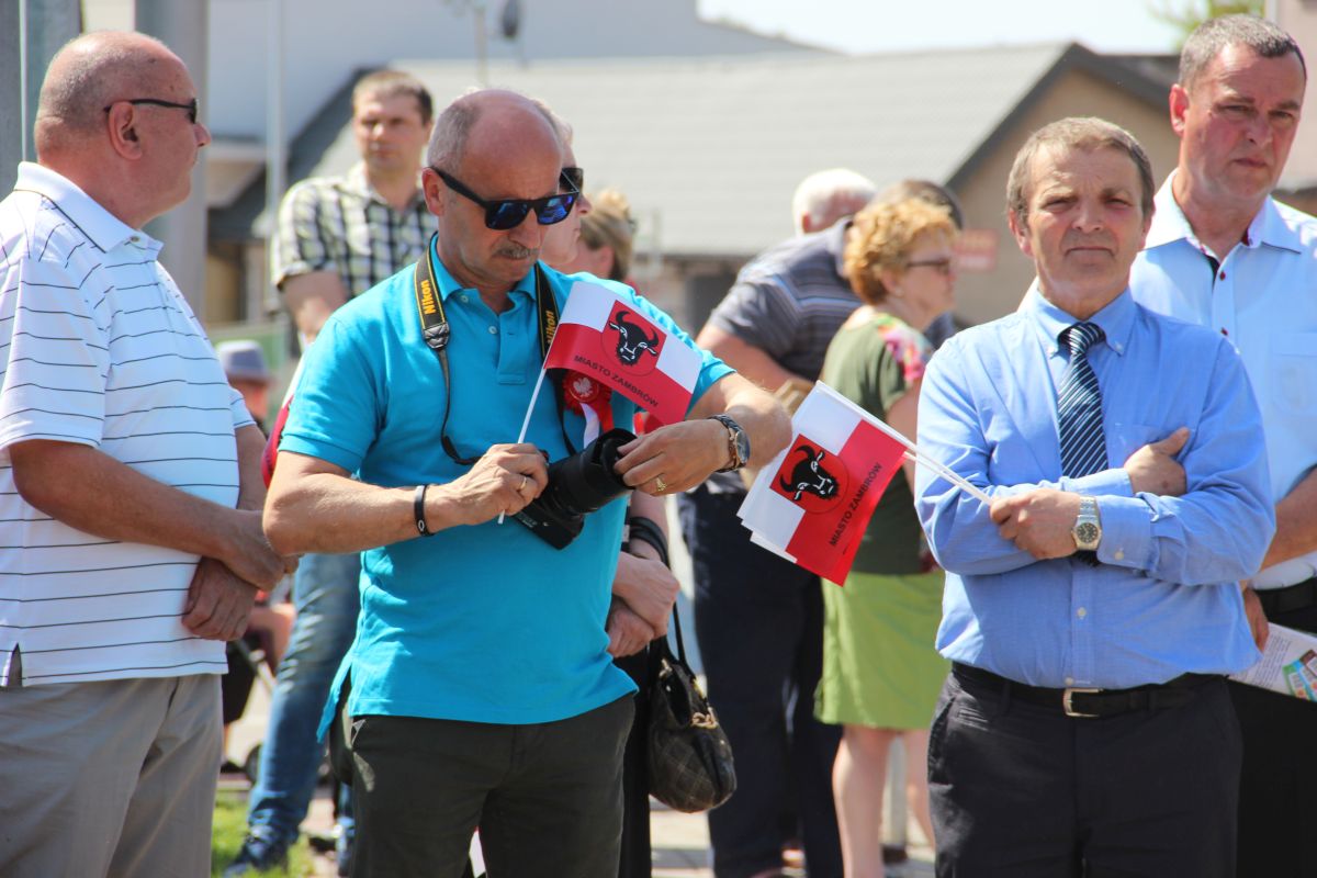 Uroczystości na Placu Sikorskiego rozpoczęły się od odśpiewania Hymnu Narodowego. Następnie przemówienie wygłosił Burmistrz Miasta Zambrów Kazimierz Dąbrowski.