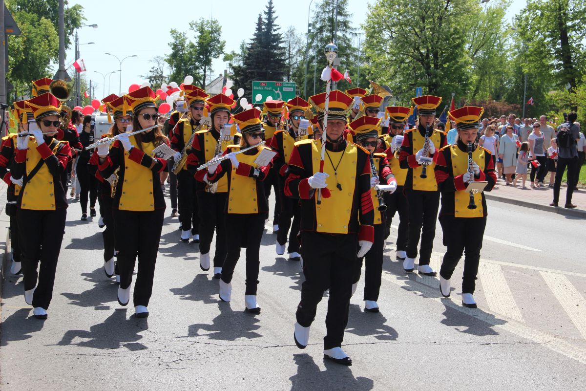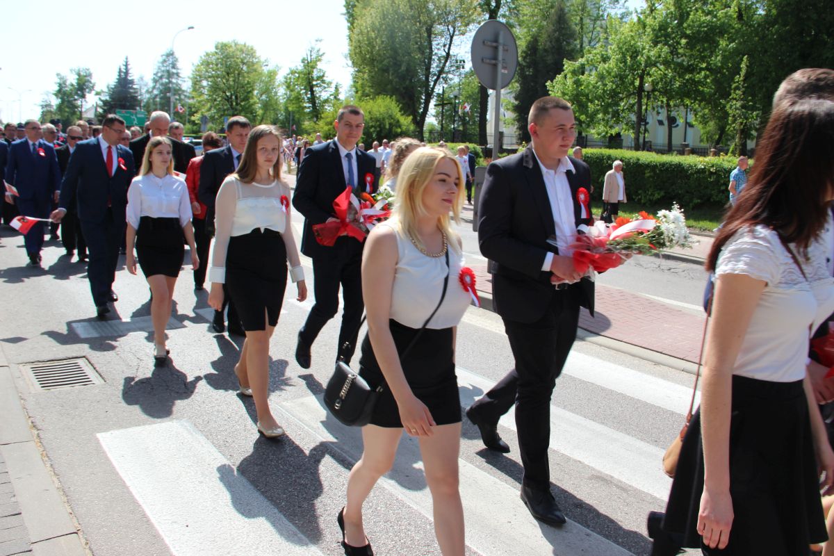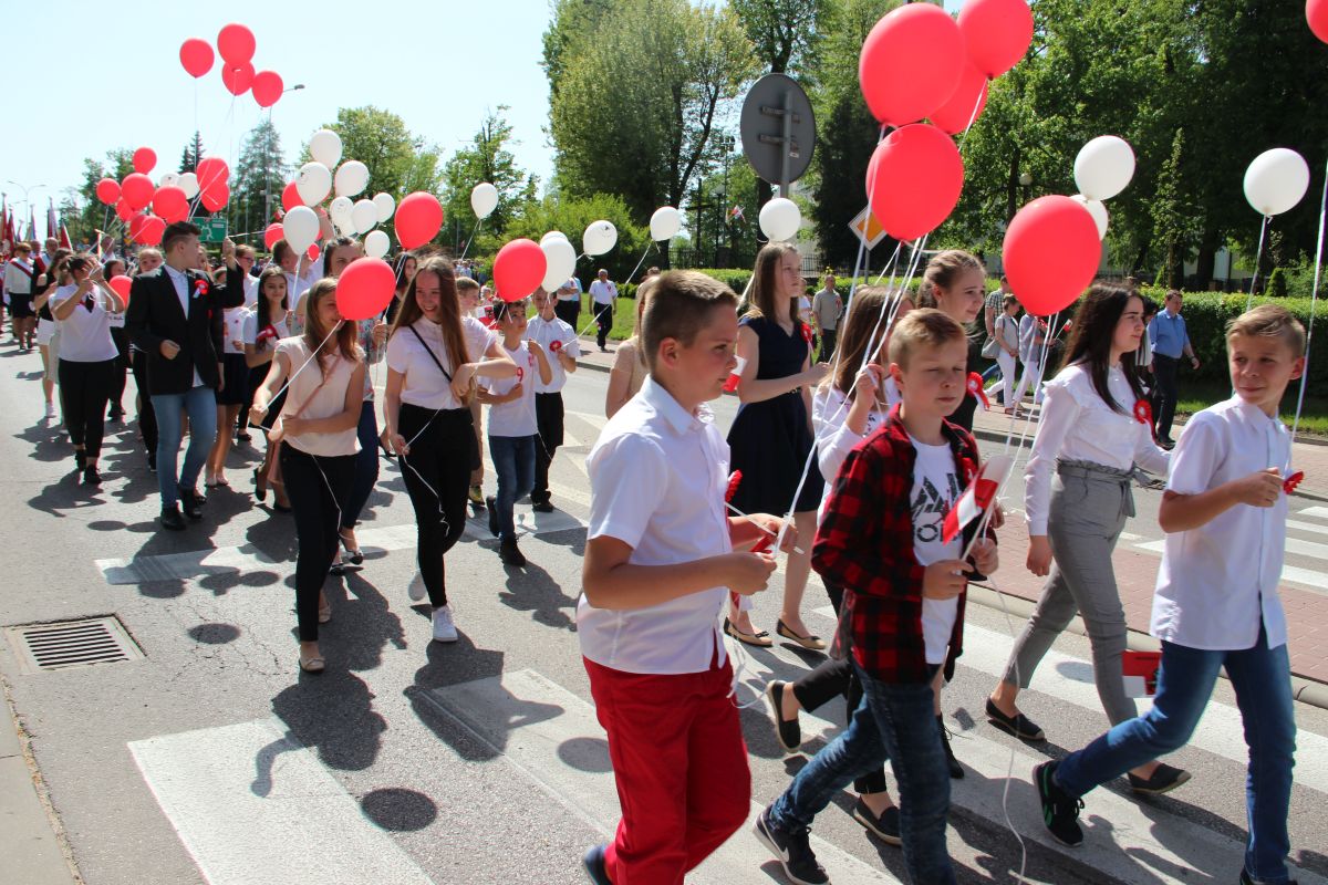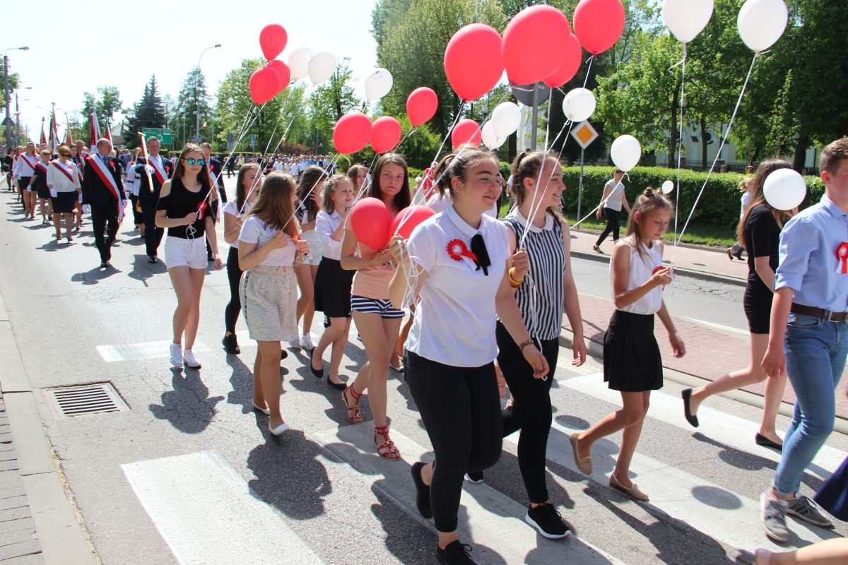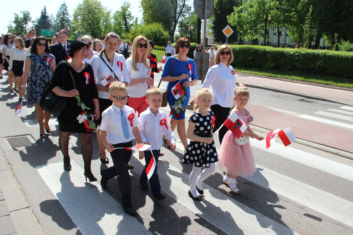 Tuż po homilii odbył się przemarsz pod pomnik Powstania Styczniowego na Placu Sikorskiego. Pochód głównymi ulicami miasta tradycyjnie poprowadziła Miejska Młodzieżowa Orkiestra Dęta pod batutą kapelmistrza Krzysztofa Witkowskiego oraz zespół mażoretek. Marsz miał wyjątkową oprawę, gdyż uczestniczyły w niej dzieci i młodzież z Szkoły Podstawowej nr 5 trzymająca w rękach białe i czerwone balony oraz miejska maskotka Zambruś.