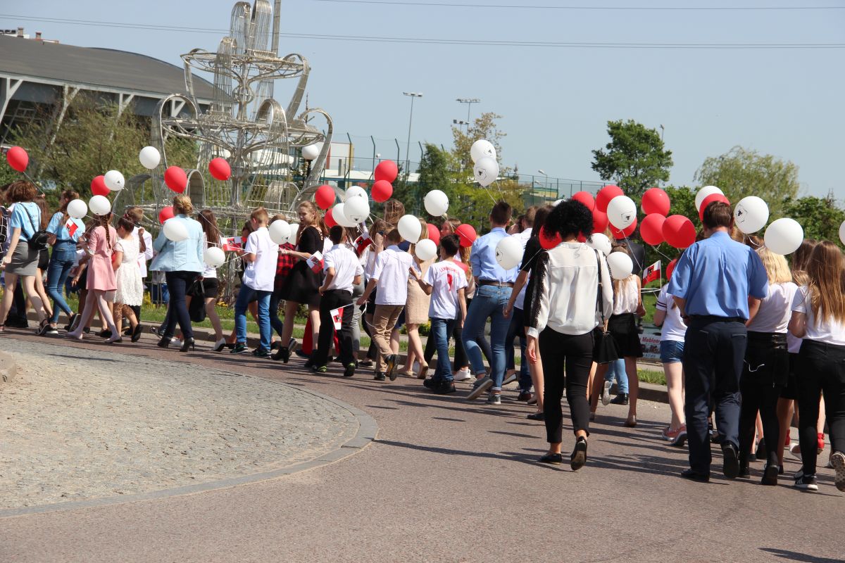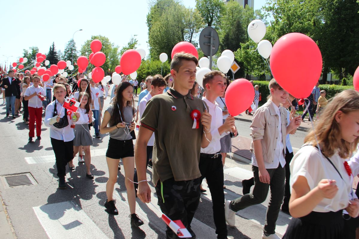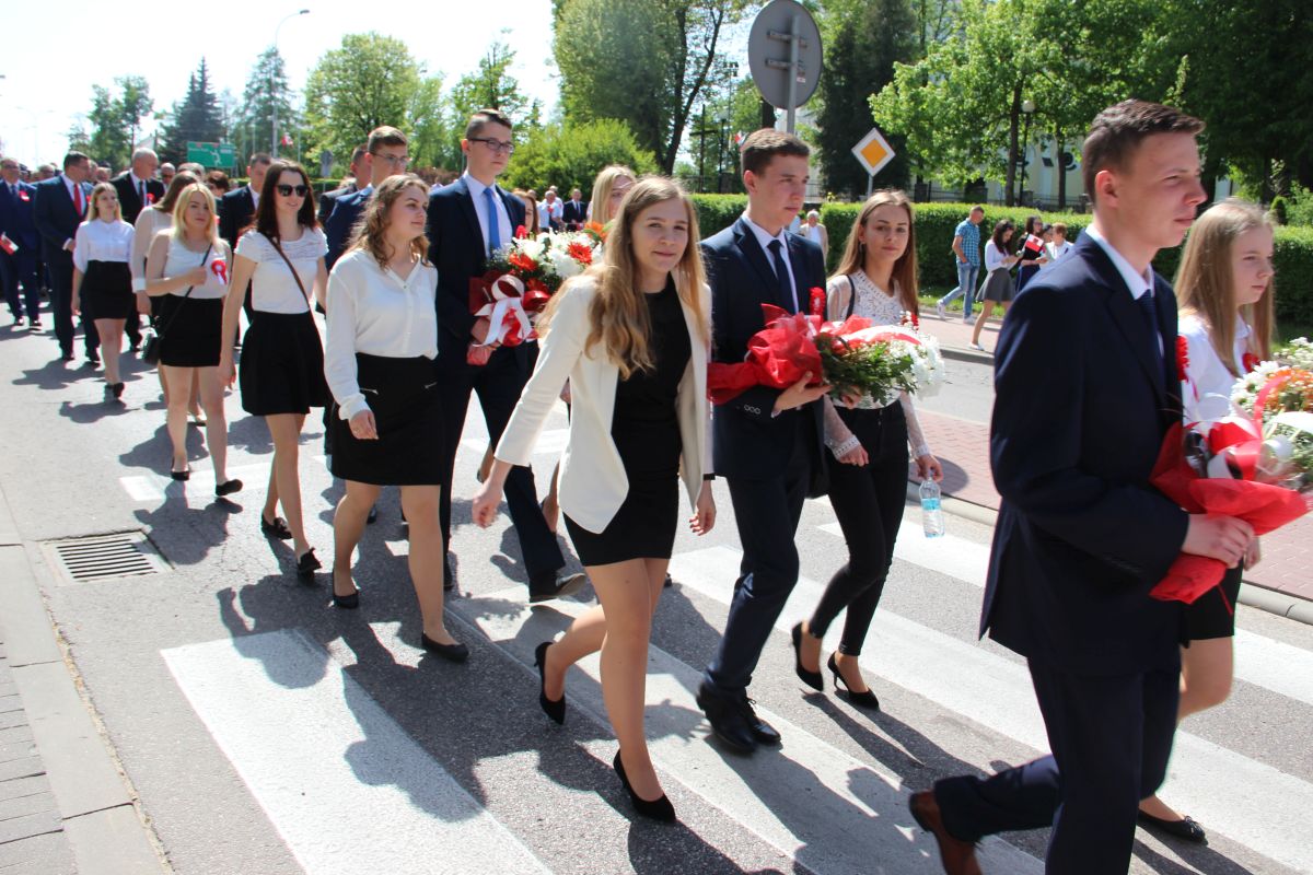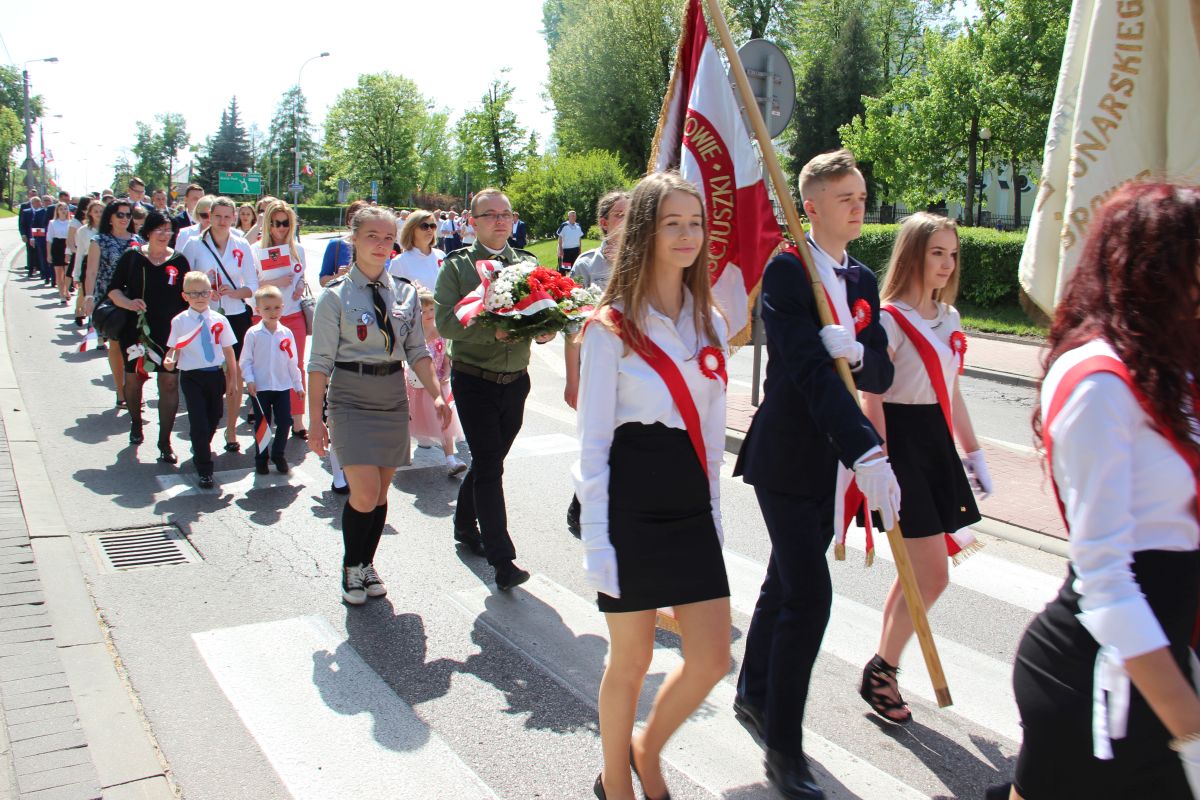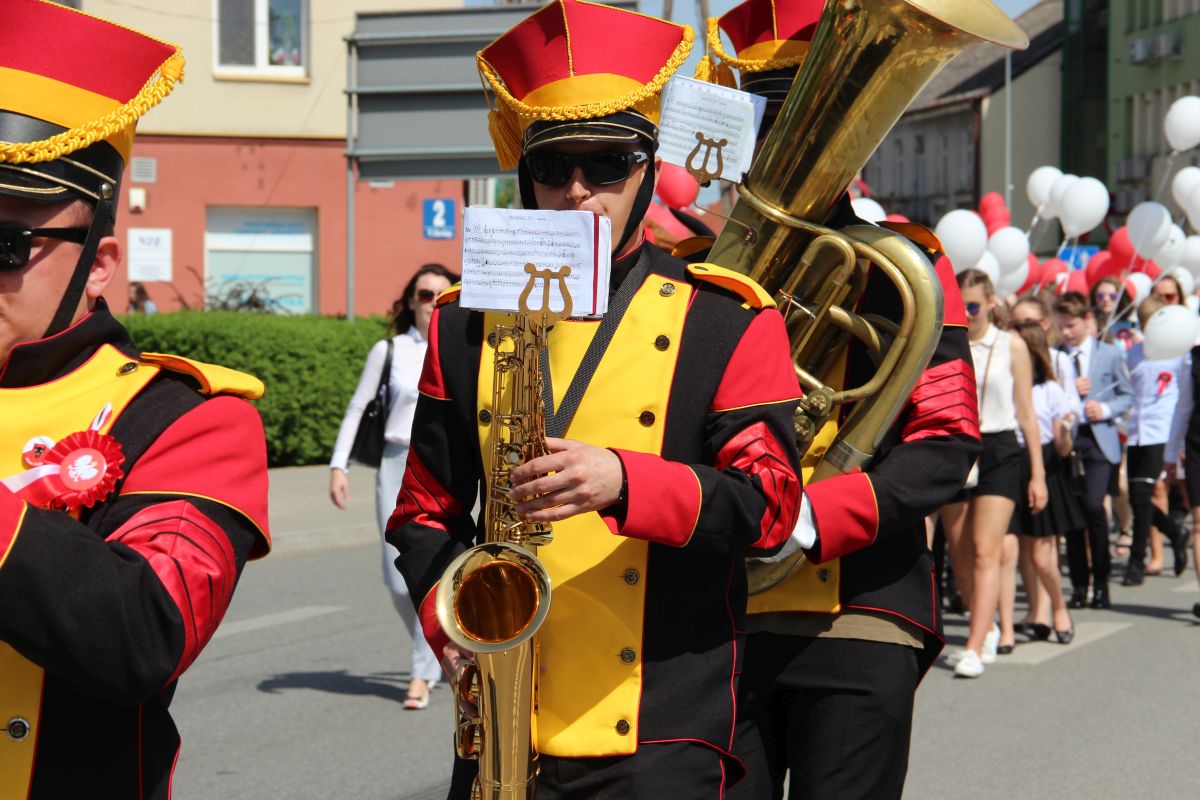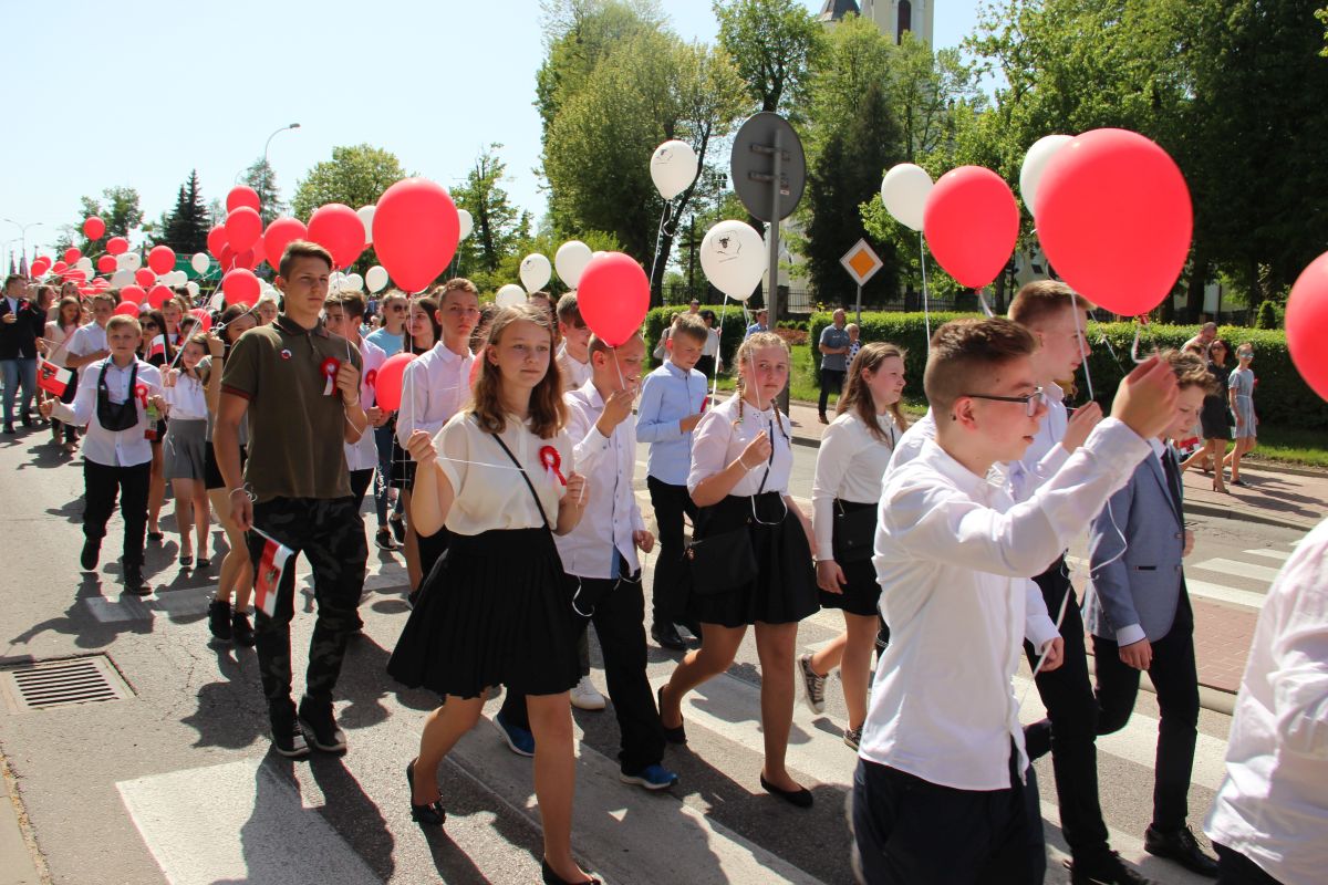 Tuż po homilii odbył się przemarsz pod pomnik Powstania Styczniowego na Placu Sikorskiego. Pochód głównymi ulicami miasta tradycyjnie poprowadziła Miejska Młodzieżowa Orkiestra Dęta pod batutą kapelmistrza Krzysztofa Witkowskiego oraz zespół mażoretek. Marsz miał wyjątkową oprawę, gdyż uczestniczyły w niej dzieci i młodzież z Szkoły Podstawowej nr 5 trzymająca w rękach białe i czerwone balony oraz miejska maskotka Zambruś.