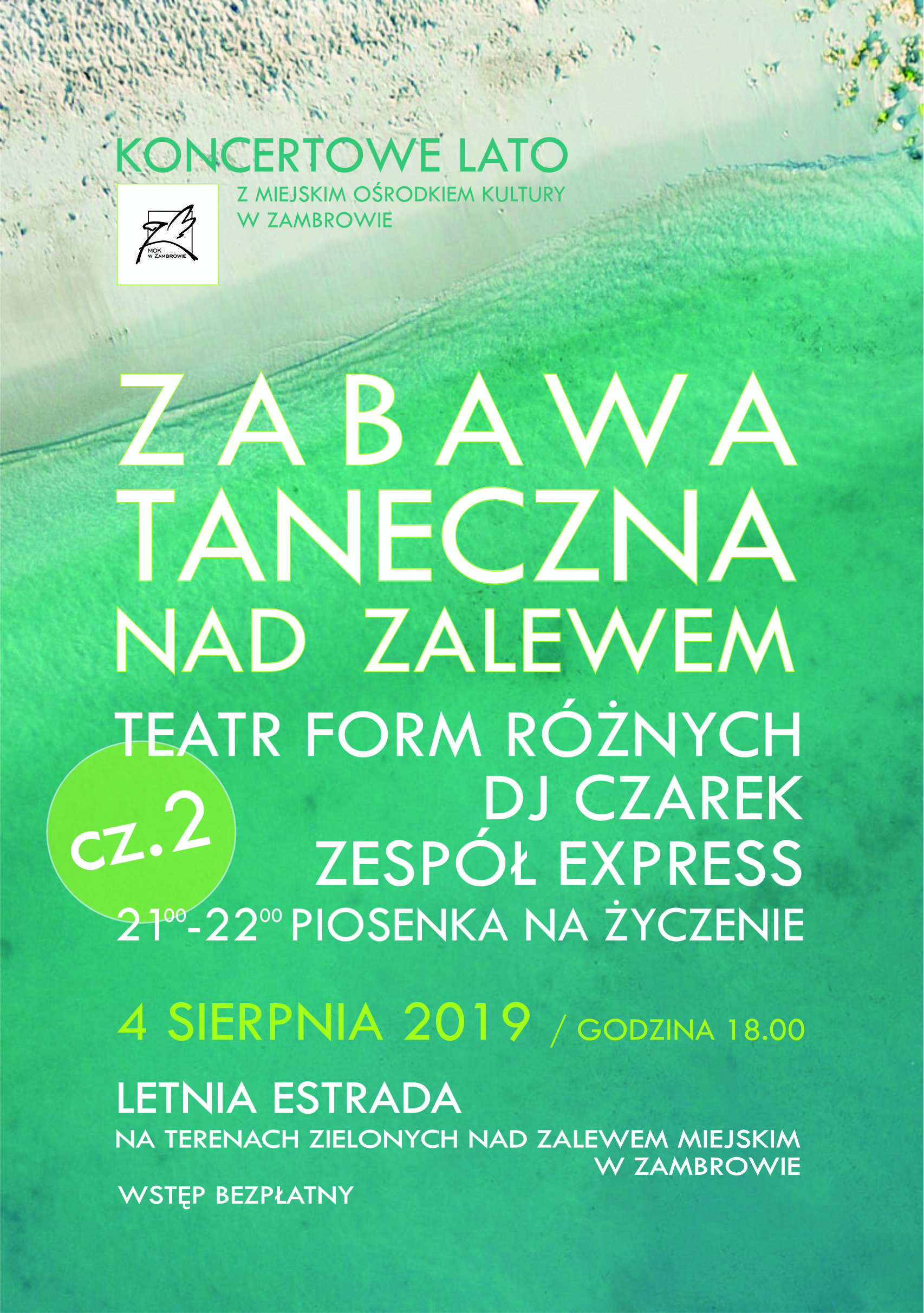 18.00 – 22.00 ZABAWA TANECZNA NAD ZALEWEM – w ramach imprezy odbędą się konkursy sportowe z nagrodami