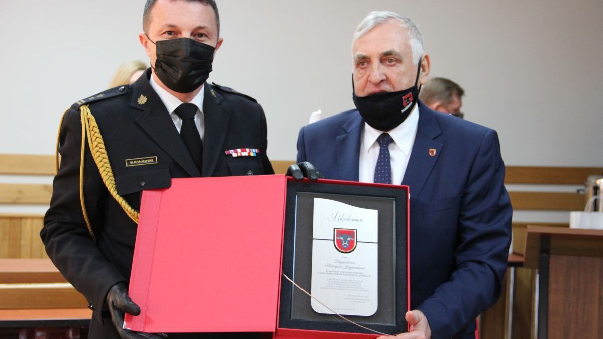 Po części oficjalnej zaproszeni goście podziękowali bryg. Maciejowi Krajewskiemu za pełnioną służbę na stanowisku komendanta PPSP w Zambrowie.