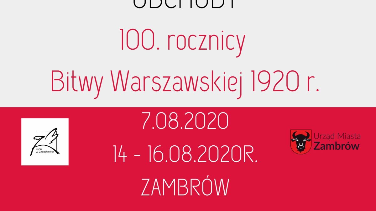 Burmistrz Miasta Zambrów oraz Dyrektor Miejskiego Ośrodka Kultury w Zambrowie zaprasza do udziału w wydarzeniach organizowanych w ramach obchodów 100. rocznicy Bitwy Warszawskiej 1920r.