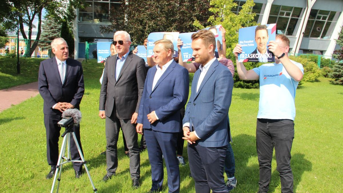 Na terenach zielonych przy zalewie miejskim podczas konferencji prasowej zaproszeni goście apelowali do mieszkańców Zambrowa o oddanie głosu na kandydującego na urząd prezydenta Rafała Trzaskowskiego.