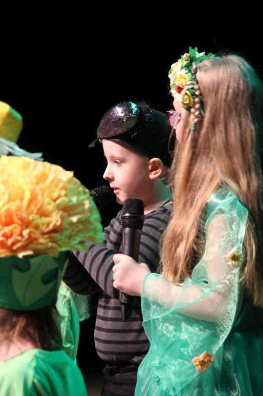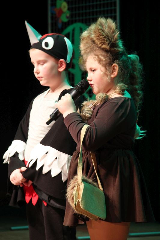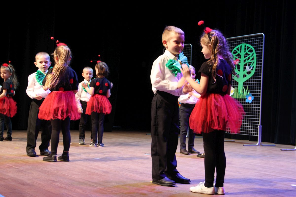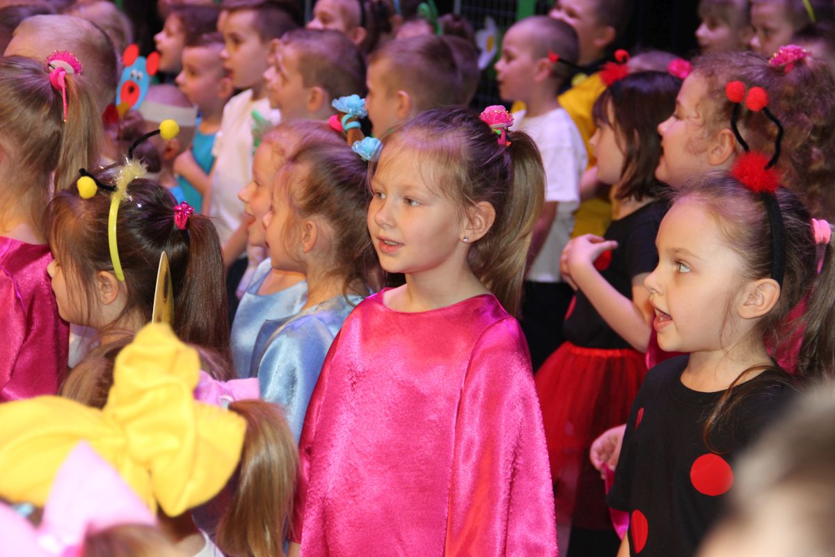 Z uwagi na wiosenną porę roku przedszkolaki przygotowały program słowno – muzyczny z udziałem Pani Wiosny, biedronek, żabek, bociana, pszczółek, wiewiórki, zajęcy i miśków.