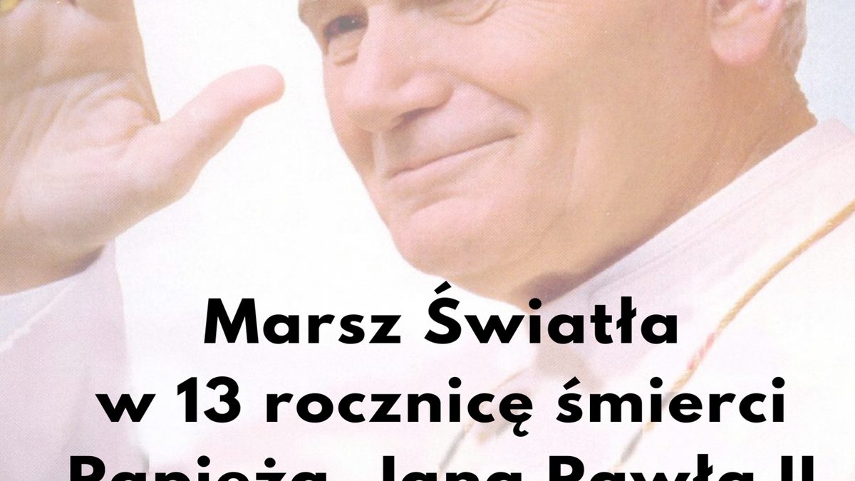 Parafia pw. Trójcy Przenajświętszej oraz Miasto Zambrów zaprasza na Marsz Światła w 13 rocznicę śmierci Papieża Jana Pawła II. Marsz odbędzie się 2 kwietnia 2018 roku o godz. 21.oo. Wymarsz spod Zespołu Szkół nr 1 „Grota” Al. Wojska Polskiego.