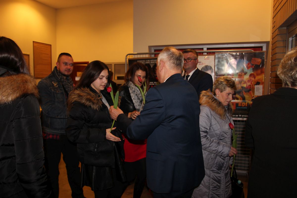 Na zakończenie koncertu Burmistrz Miasta Zambrów wręczył każdej Pani tulipana.