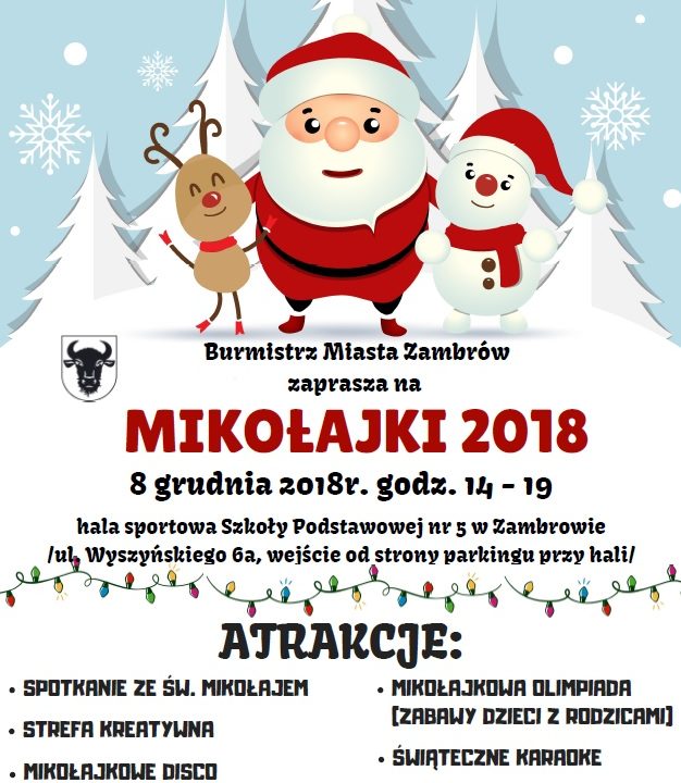 Urząd Miasta Zambrów informuje, że 15.12.2018 r. (sobota) jest dniem pracującym w godz. 7:00 – 15:00. Natomiast 24.12.2018 r. (Wigilia) jest dniem wolnym od pracy.