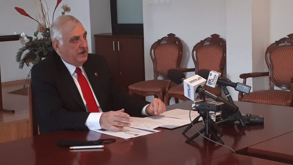 Konferencja prasowa Burmistrza Miasta Zambrów w sprawie budowy nowych mieszkań czynszowych pod wynajem w Zambrowie oraz omówienia propozycji przeniesienia garaży znajdujących się przy ul. Magazynowej