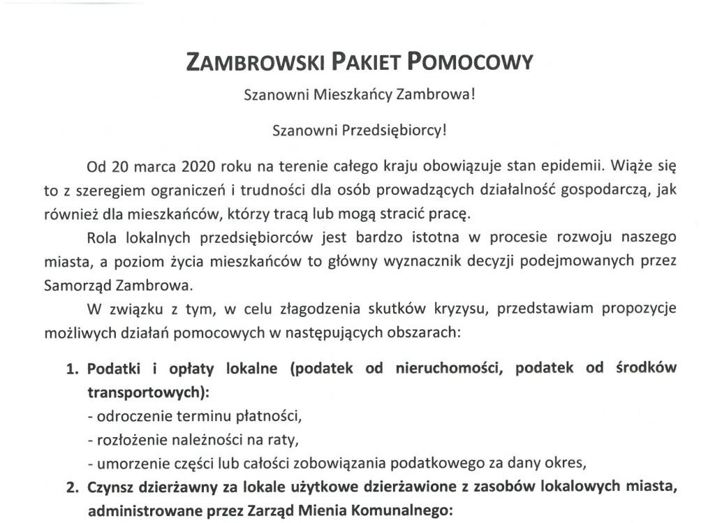 KOMUNIKAT BURMISTRZA ZAMBRÓW z dnia 23 marca 2020 r. w  sprawie  czasowego zamknięcia targowiska miejskiego  przy ul. Wyszyńskiego nr 14 i   ul. Al. Wojska Polskiego   w […]