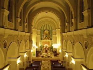 Kościół pod wezwaniem Trójcy Świętej zbudowany w latach 1874-79 według projektu warszawskiego architekta Bolesława Muklanowicza. Zbudowany w stylu neoromańskim na planie krzyża łacińskiego, trójnawowy, bazylikowy z transeptem, dwunawową fasadą i jednoprzęsłowym prezbiterium, zamkniętym piecioboczną absydą.